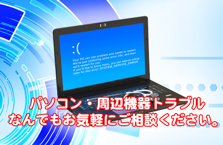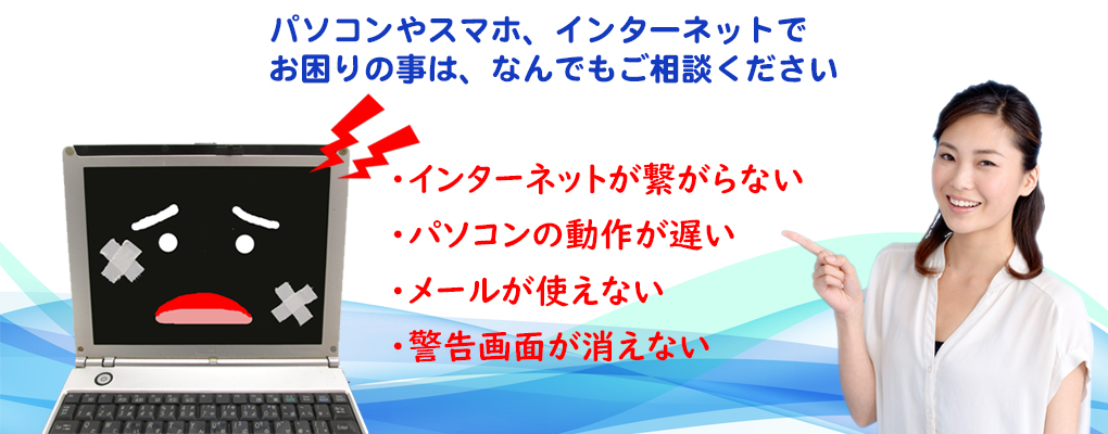急に動きが遅くなったパソコン、インターネットに接続できない。パソコンやスマホの困ったは、なんでもお気軽にお問い合わせください。